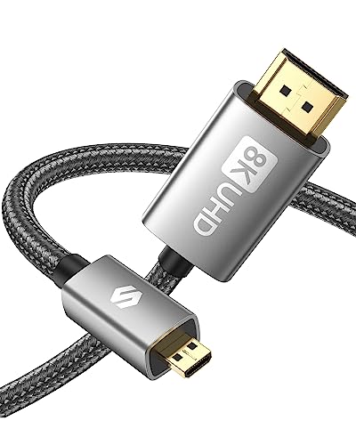 Silkland Micro HDMI to HDMI 2.1 Kabel 1M, 8K@60Hz Micro HDMI-Kabel stöder Ethernet, 3D, HDR och eARC Kompatibel med GoPro Hero 9/8/7/6/5, Raspberry Pi 5 4, Kamera A6300 A6400