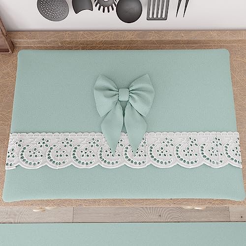 PETTI Artigiani Italiani - Spisskydd för spis, elegant spisskydd Shabby Chic i enfärgad med volang i spets sjunkande och rosetter, spisskydd i bomull, spisskydd 70 x 50 cm Aqua