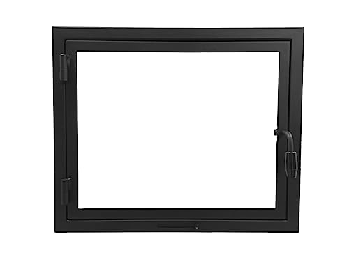 Dörr ugn 50 x 52 cm, dörr öppen spis med glas för pizzerugn, gjutjärn. Öppningskänsla: höger | Handtaget är till vänster.