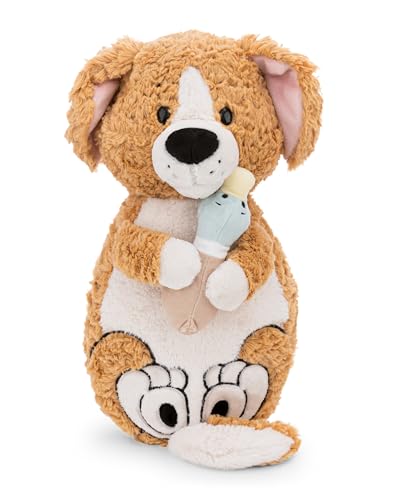 NICI Gosedjur, hund med anka, brun, 30 cm, mjukt plyschdjur från NICI, sött mjukisdjur för att gosa och leka med, bra presentidé för barn och vuxna - 62149