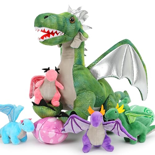 MorisMos 55 cm, stående drake, gosig leksak med baby i magen, grön, stor plyschdrake, gosedjur, XXL, fluffigt mjukisdjur, Dragor, Dragon Teddys present för pojkar