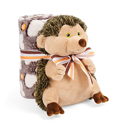 Söt Babyfilt med Mjukdjur - Färgglad Täcke med Underbart Mjukt Gosedjur för Baby Pojke Flicka 0 1 2 3 År - Fleecefilt för Vintern för Barn med Fluffig Leksak och Båge - 120x80 cm - Perletti (Igelkott)