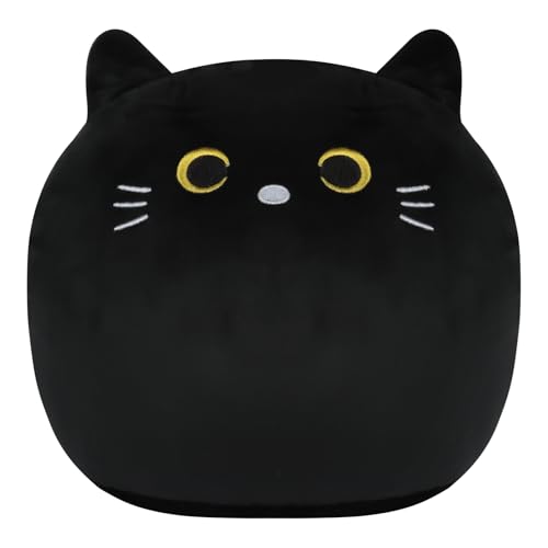 Vicloon Plyschleksak, kattformad plyschkudde, Kawaii mjuk leksak, gosedjur, supermjukt, plyschdocka kudde, present till barn flicka 3+ år (svarta katter, 18 cm)