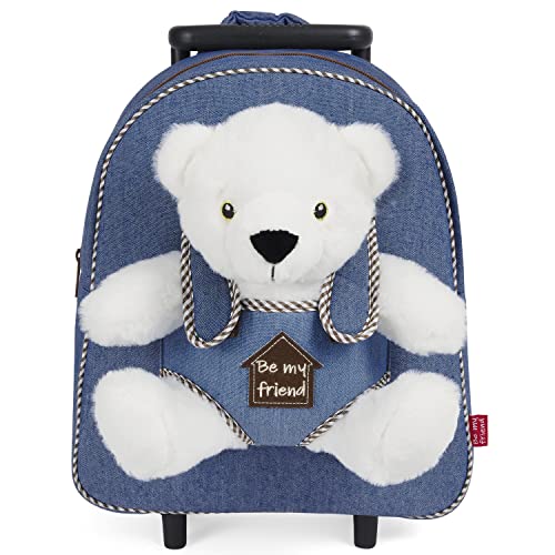 Handbagage Ryggsäck i Plysch med Mjukisdjur Barn 3-5 År - Småbarn Pojke Flicka Handväska med Avtagbart Gosedjur och Löstagbara Hjul - Liten Väska för Barn - 32x28x11 cm - Perletti (Isbjörn)