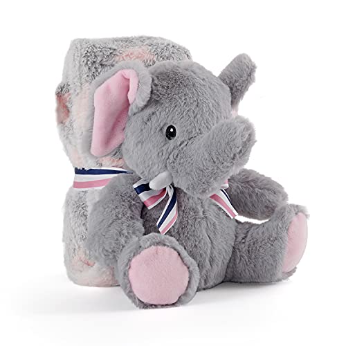 Söt Babyfilt med Mjukdjur - Färgglad Täcke med Underbart Mjukt Gosedjur för Baby Pojke Flicka 0 1 2 3 År - Fleecefilt för Vintern för Barn med Fluffig Leksak och Båge - 120x80 cm - Perletti (Elefant)