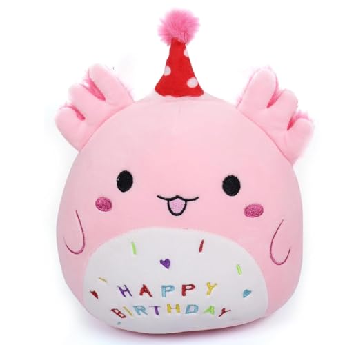 Happy Birthday, plyschdjur, födelsedag, gosedjur, 23 cm, Kawaii Axolotl, gosedjur, mjukisdjur, flicka, Axolotl, plyschkudde, leksak, födelsedag, present för barn, pojkar, flickor