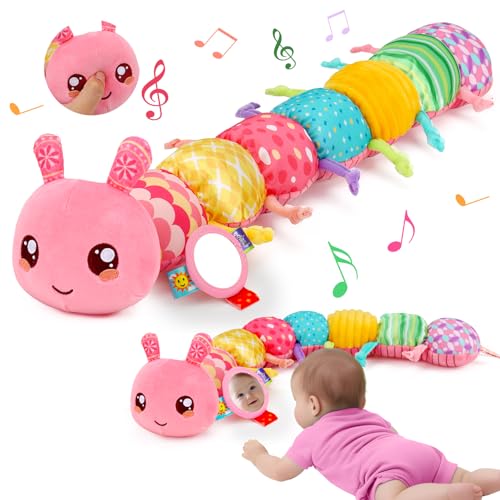 Lypsochaat Babyflicka, leksak 0–3 0–6 månader, rosa musikaliskt larv, gosedjur, med greppskallra för bebisspegel, sensorisk babyleksak 0–3 6 månader, baby flicka, gåva
