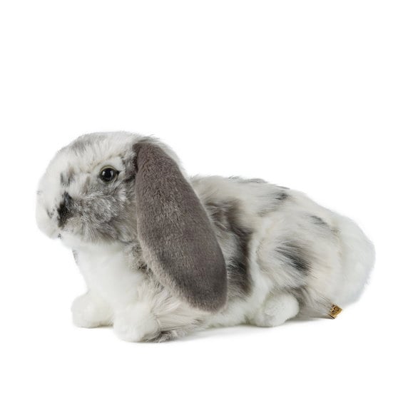 Litet foothare hoppel, gosedjur med fluffig päls och hängande öron, att leka med, sova och mysa, kanin 6328, grå