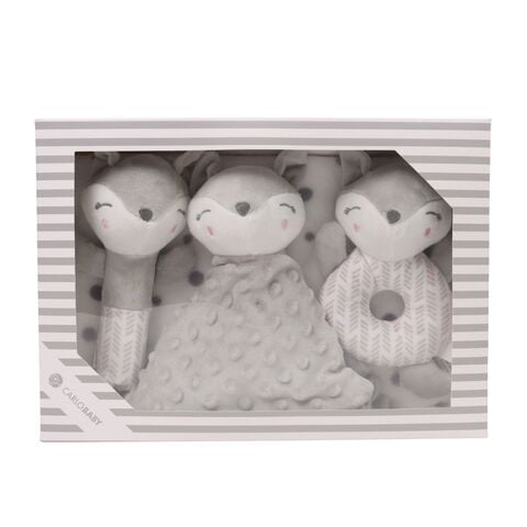 Carlo Baby | Fleecefilt Och Gosedjur Giftset Grå Räv | ONE SIZE