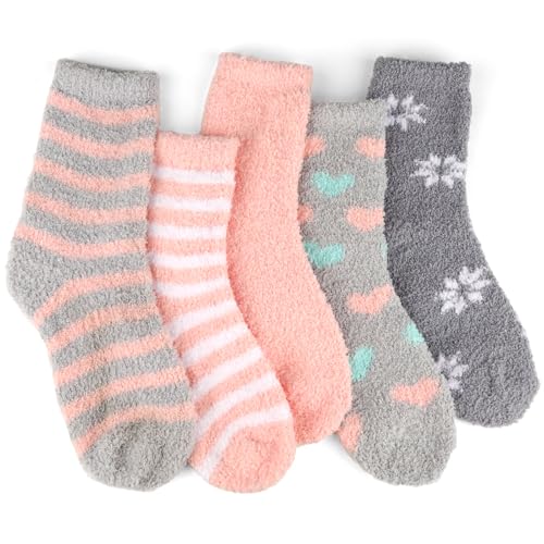 JIANGZHIB 5 par gosiga strumpor för kvinnor, fluffiga sängstrumpor av korallfleece, tjocka vinterstrumpor, husstrumpor, gosiga strumpor, jul för flickor, tjocka mjuka sängstrumpor, sovstrumpor, ROSA,