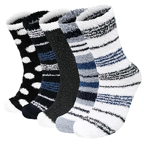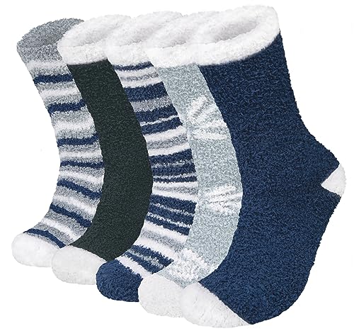 Chalier Cozy 5 par tjocka gosiga strumpor mjuka bekväma vinter herrstrumpor varma hem fluffiga sängstrumpor presenter för män kvinnor, Blandade färger 13, one size
