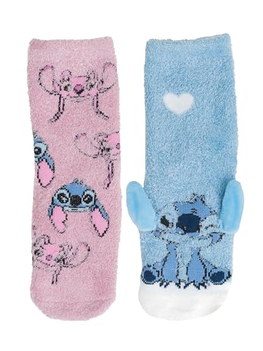 Disney Lilo & Stitch 3D ABS gosiga strumpor för flickor – fluffiga barn vinterstrumpor, stoppstrumpor, halkfria strumpor, rosa/blå (2-pack), Rosa/blå, 27-30