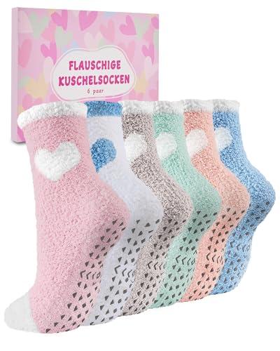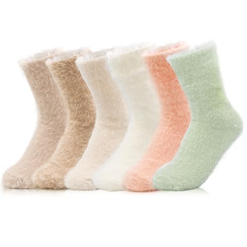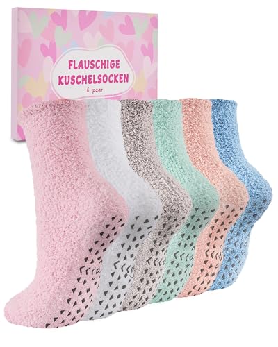 SukModen Gosiga strumpor, stoppstrumpor, kvinnor, 6 par, fluffiga strumpor, varma plyschstrumpor, fuzzy fluffiga mysiga strumpor, halkfria strumpor med noppor, sängstrumpor, hemmastrumpor