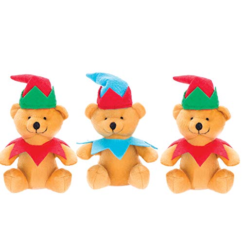 Baker Ross AV632 Plyschbjörnar med julälva, gosiga leksaker för barn att leka med perfekta strumpor och fyllning för vinterfest (paket med 3), blandade