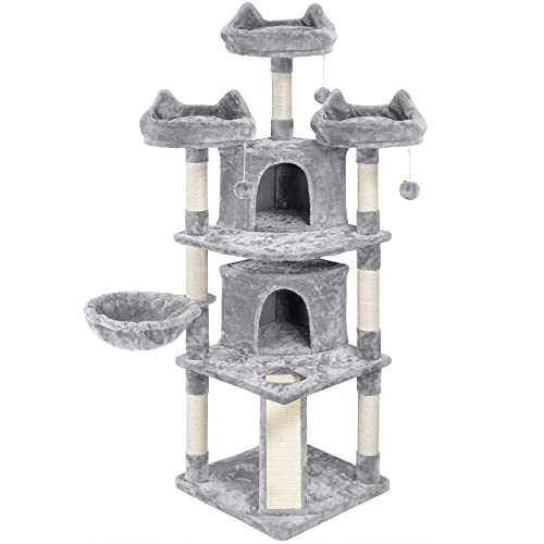 Yaheetech Kattklösträd 174 cm kattträd stort klätterträd 3 gosiga utsiktsplattformar lekhus för katter