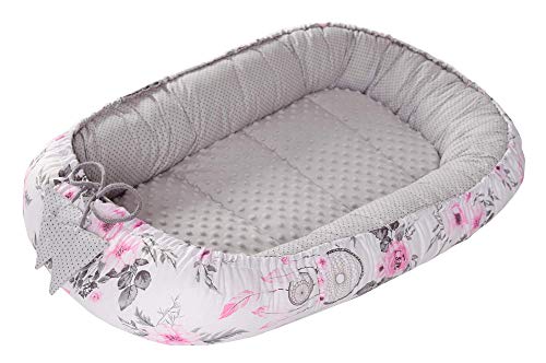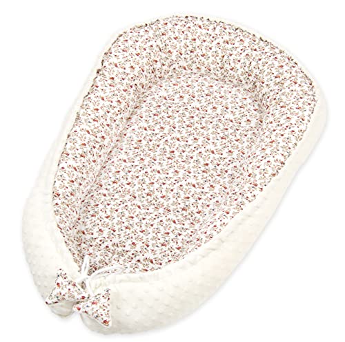 Pimko Babynest, 2-sidigt, minkymaterial, babybädd för bebis, gosigt bo, 100% bomull, babykokong för spädbarn och nyfödda, lämpligt för hemmet, 55 x 90 cm (blomma)