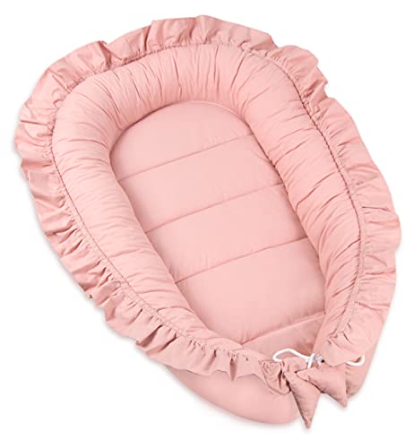 PIMKO Babybo med volang, babybo för bebis, gosigt bo, babykokong för spädbarn och nyfödda, 100 % bomull, bo för hemmet, 55 x 90 cm (rosa)