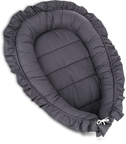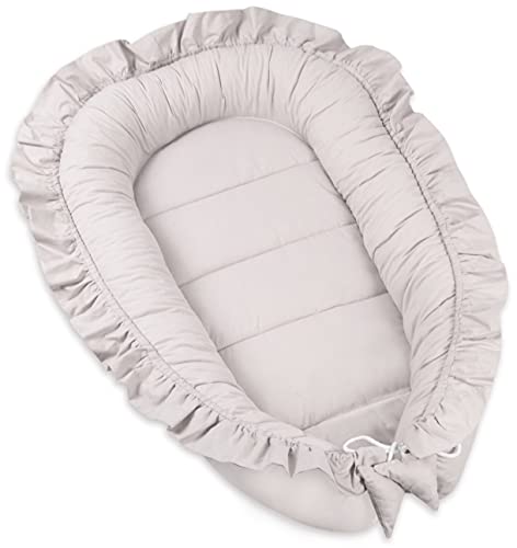 PIMKO Babybo med volang, babybo för bebis, gosigt bo babykokong för spädbarn och nyfödda, 100 % bomull, bo för hemmet, 55 x 90 cm (grå)