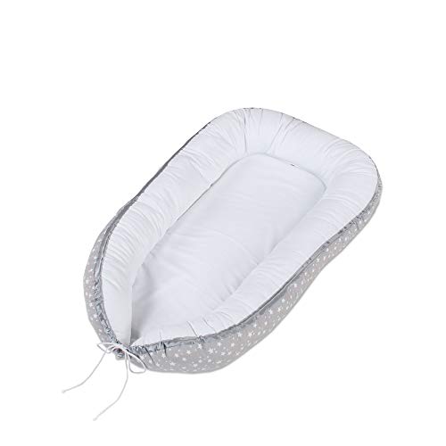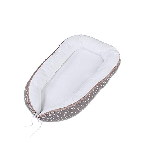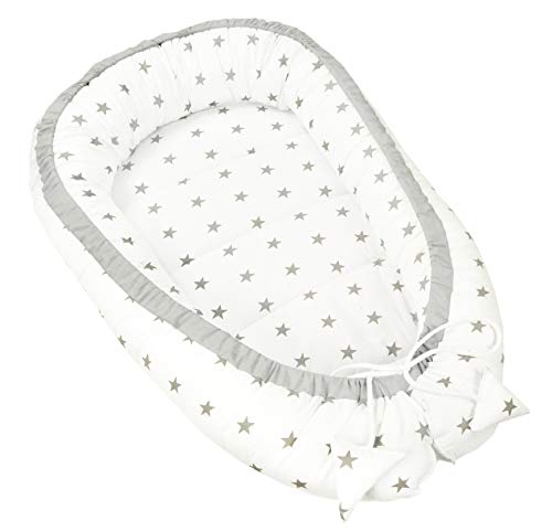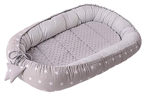 Medi Partners Babybo, gosigt bo, babybo, 100% bomull, bo resesäng för spädbarn, 100 x 60 x 15 cm, avtagbar insats (grå stjärnor med grå minky)