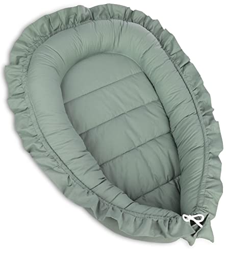 PIMKO Babybo med volang, babybo för bebis, gosigt bo babykokong för spädbarn och nyfödda, 100 % bomull, bo lämpligt för hem, 55 x 90 cm (pistasch)