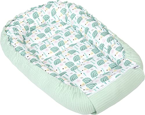Medi Partners Babybo bo bo för nyfödda – 100 x 60 x 15, bebisbo, dubbelsidigt, bo, säng, 100% bomull, våffel, gosigt bo bärbar (mynta igelkott med mynta våffel)