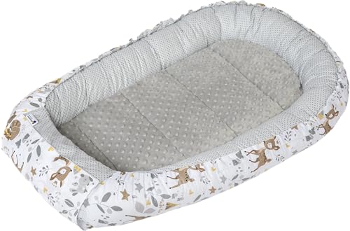 Pimko Babynest, 2-sidigt, minkymaterial, babybädd för bebis, gosigt bo babykokong för spädbarn och nyfödda, för hem, 55 x 90 cm
