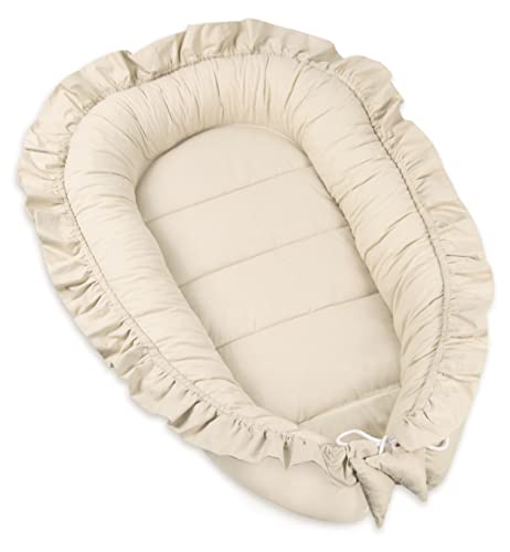 PIMKO Babybo med volang, babybo för bebis, gosigt bo, babykokong för spädbarn och nyfödda, 100 % bomull, bo för hemmet eller som babybo 55 x 90 cm (beige)