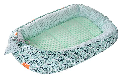 Medi Partners Babybo, gosigt bo, babybo, 100% bomull, bo resesäng för spädbarn, 100 x 60 x 15 cm, avtagbar insats (skog med minter, minky)