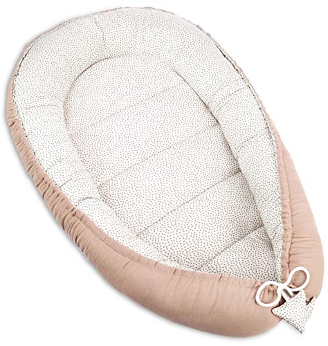 PIMKO Babybo, babybo för spädbarn, gosigt bo på 2-sidig babykokong för spädbarn och nyfödda, babybo, 100 % bomull, bo lämplig för hem, 55 x 90 cm (beige muslinin)