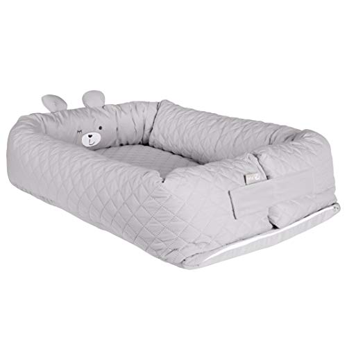 Medi Partners Babybo, gosigt bo, babybo, 100% bomull, bo resesäng för spädbarn, 100 x 60 x 15 cm, avtagbar insats (REH med grå minky)