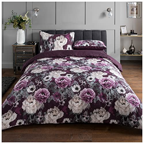 Sleepdown Bäddset med blommönster, lättskött, mjukt, gosigt, vändbart, 135 x 200 cm + 1 örngott 80 x 80 cm, violett, polybomull, 135 x 200 cm + 1 x 80 x 80 cm