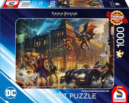 Schmidt Spiele 58786 Thomas Kinkade, Warner, The Dark Knight Saves Gotham City, 1 000 bitar pussel, färgglada
