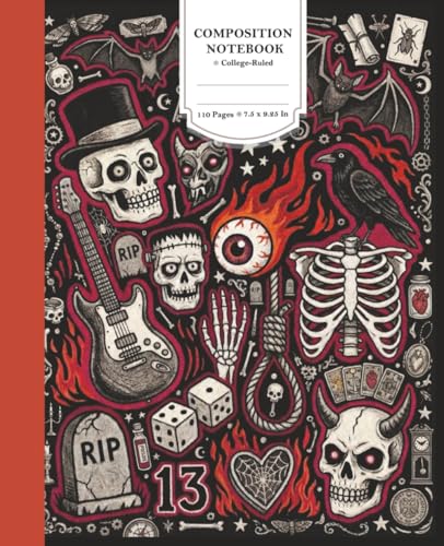 Composition Notebook: Red and Black Punk Rock Tattoo Flash Skulls - College Ruled, 110 Pages, 7.5 x 9.25 Inch - Dark Gothic Alternative Aesthetic Journal for Teens and Boys