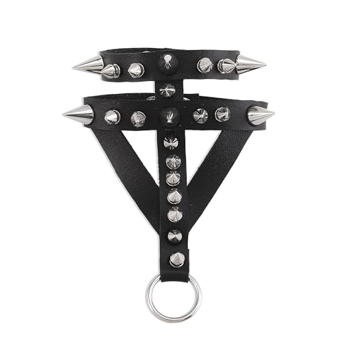 Punk Gothic Style Ring Armband Justerbar Personlighet Smycken Med Kedja Och Studs Tillverkad Av Pu Läder Gothic Rock Punk Cosplay Armband För Halloween Props Kostym Tillbehör (Svart, 1 st.)