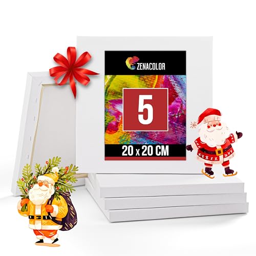 Zenacolor Set med 5 målardukar 20 x 20 cm - akryl/olja/gouache målarduk - tom duk/syrafri/100% bomull - kanvas med träram