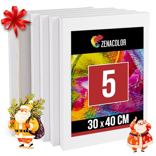 ZENACOLOR Set med 5 målardukar 30 x 40 cm - akryl/olja/gouache målarduk - tom duk/syrafri/100% bomull - kanvas med träram