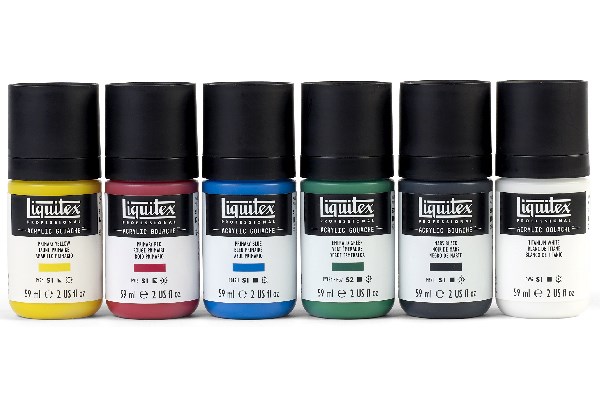Liquitex 3699323 Proffessional Acrylic Gouache, primära färger, set med 6 flaskor 59 ml