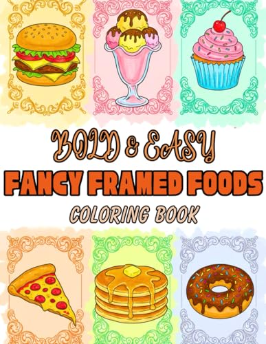 Bold & Easy Fancy Framed Foods Coloring Book for Adults and Seniors: Beautifully Illustrated Gourmet Dishes, Elegant Desserts, and Decorative Food Art for Stress Relief and Creativity