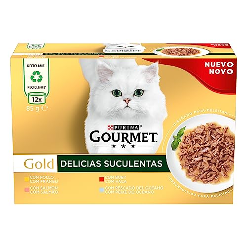 Purina Gourmet Gold suckulent glädje, våt kattmat sortiment, 8-pack med 12 burkar à 85 g – 96 burkar