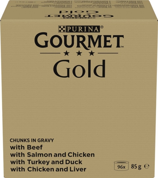 Gourmet Purina Gold Våtfoder för katter med nötkött, kyckling, havsfisk och lax, 48 x 85 g påsar