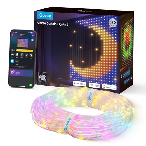 Govee Curtain Lights, DIY GIF smart LED-gardin, 520 RGBIC färgskiftande sagolampor, smart dynamisk dekoration, IP65 MAX vattentät, kompatibel med Alexa (1,5 x 2 m)