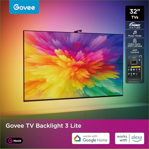 Govee RGBICW TV bakgrundsbelysning 3 Lite med fish-eye korrigeringsfunktion synk för 32 tums TV-apparater