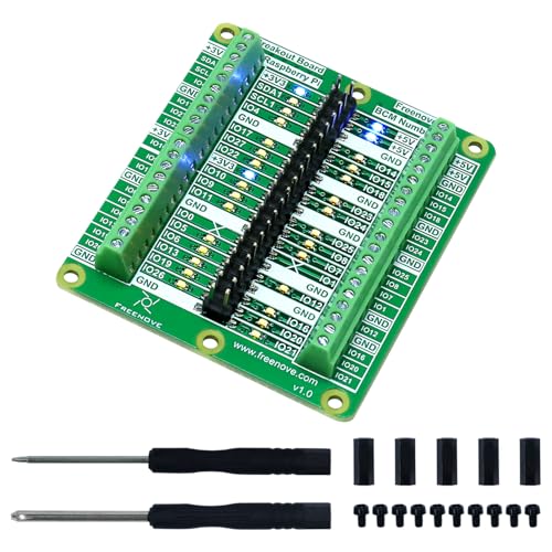 Freenove Breakout Board for Raspberry Pi 5 / 4B / 3B+ / 3B / 3A+ / 2B / 1B+ / 1A+ / Zero 2 W/Zero W/Zero, Terminal Block Shield HAT with Pin Header, GPIO Status LED