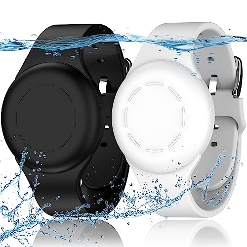 R-fun Vattentät för Air Tag-armband [2-pack] kompatibel med Apple Air Tag Finders med mjuk silikon, anti-förlorad GPS-artikelsökare fodral, svart/vit
