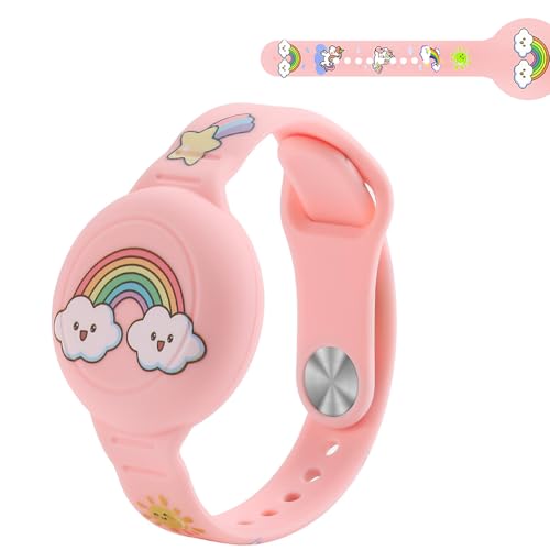 Barn vattentätt Airtag-armband: Söt tecknad justerbar dold för Apple Air Tag Holder, mjukt silikonfodral mot förlust GPS tracker rem för småbarn (regnbåge)