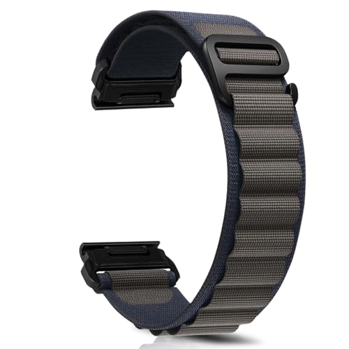 ZoRoll 26 mm QuickFit armband för Garmin Enduro 3/Garmin Fenix 8 51 mm/Fenix 7X/6X GPS/6X PRO, justerbar nylon G-krok ersättningsarmband för Garmin Fenix 5X Plus/Descent mk1 – grå blå