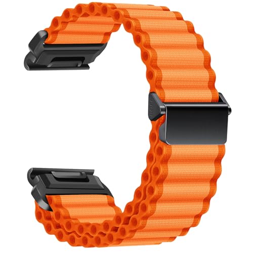 ZoRoll 26 mm QuickFit armband för Garmin Enduro 3/Garmin Fenix 8 51 mm/Fenix 7X/6X GPS/6X PRO, justerbar nylon G-krok ersättningsarmband för Garmin Fenix 5X Plus/Descent mk1 – orange
