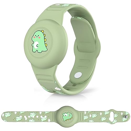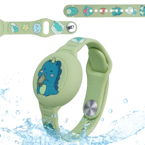 WUZUN Barn vattentät för Airtag armband: söt tecknad design justerbar dold för Apple Air Tag hållare, silikon anti-förlust GPS-tracker armband för småbarn (dinosaurier)