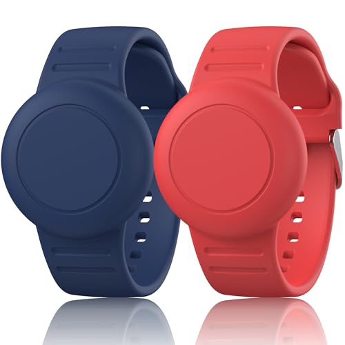 【2 stycken】Mugust Waterproof AirTag armband för barn kompatibla med Apple AirTag Finders med mjuk silikon, anti-Lost GPS-objekt Finders Case Cover för barn (marinblå + röd)