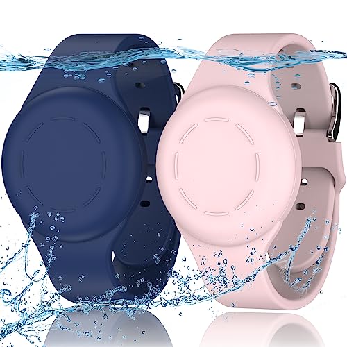 2st Barnarmband för AirTag, Vattentätt Silikon AirTag Armband för Barn Småbarn Fläder, Justerbart Klockband Anti Lost AirTag Fodral Hållare för att Dölja GPS-Spårare (Rosa, Mörkblå)